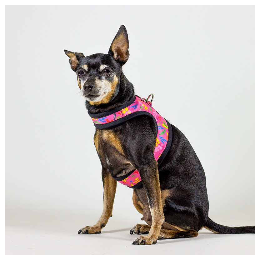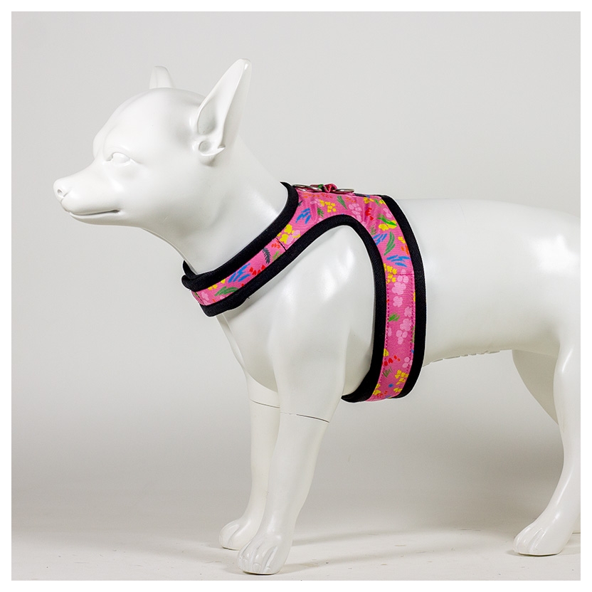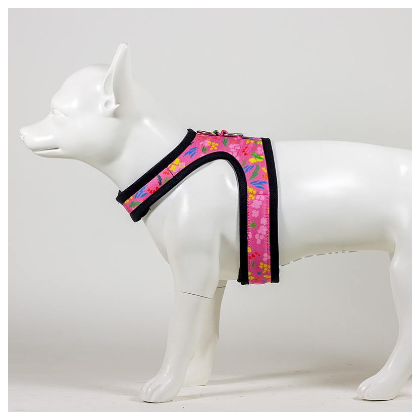 El arnés destaca por su sentido estético y práctico; incorpora dos arandelas para que amarres la correa de tu mascota. Nuestros arneses para perro están basados en las ideas de higiene, funcionalidad, estética y bienestar ya que no crea roces en el pelaje del animal lo que lo hace óptimo para su uso en gatos y perros.