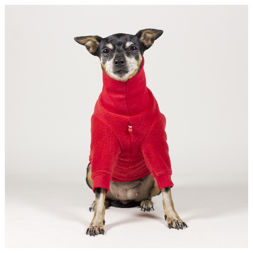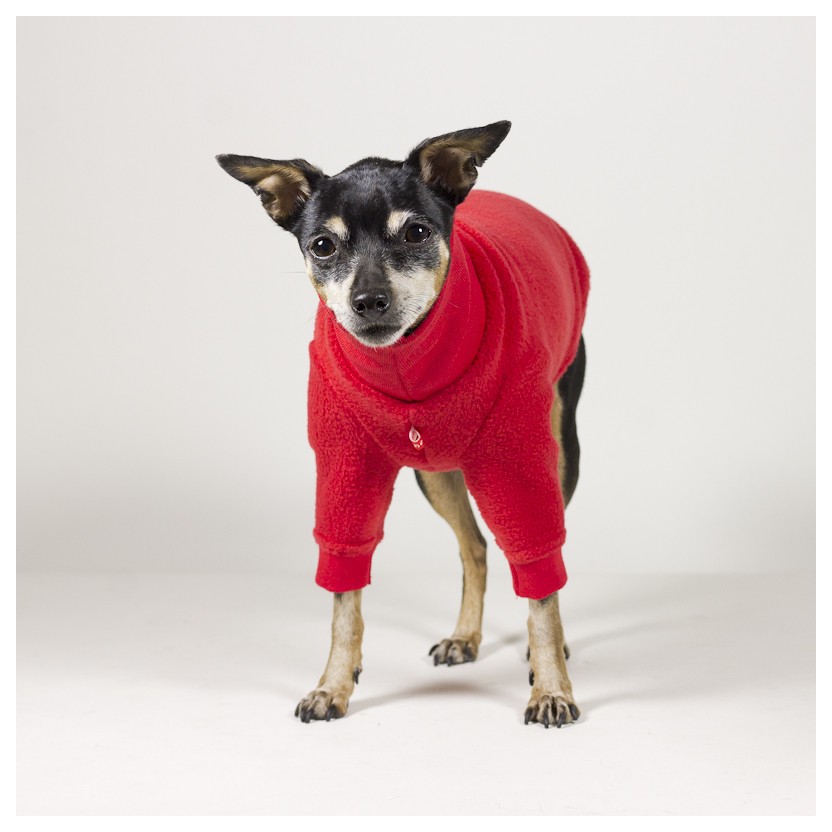 Tu perro estará caliente caliente, eh oh! con esta sudadera con cuello largo y mangas de polar roja. Elige su talla y recíbelo sin moverte de casa.