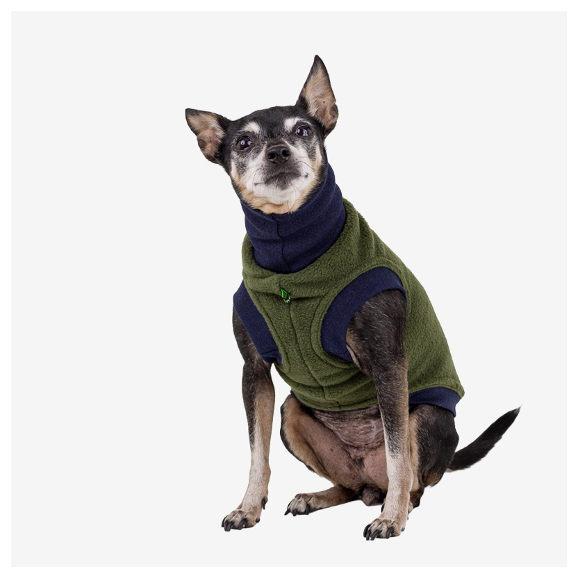 Esta sudadera polar verde para perro es una de ellas.